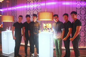 Local male TV celebrities and actors, Jeffrey Cheng (left) and William San (right) at the Za media launch recently, with the rest of the young male models.